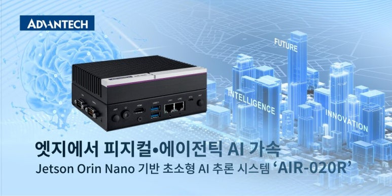 글로벌 임베디드 컴퓨팅 기업 어드밴텍이 엔비디아 젯슨 오린 나노(Jetson Orin Nano) 기반 초소형 엣지 AI 추론 시스템 ‘AIR-020R’을 출시한다. 손바닥 크기의 초소형 폼팩터에 최대 67TOPS AI 성능을 구현해 교통 모니터링, 자율주행 로봇(AMR), 의료 영상 분석 등 비전 중심의 AI 응용 분야에 투입되는 실무형 단말기로 자리매김한다는 전략이다.