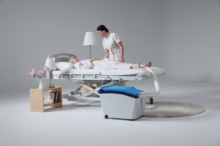 ▲나인벨헬스케어에서 개발한 욕창 예방 로봇 '나인베드'
