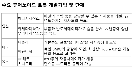 ▲ 각국의 휴머노이드 로봇 개발 현황(자료=니혼게이자이신문)