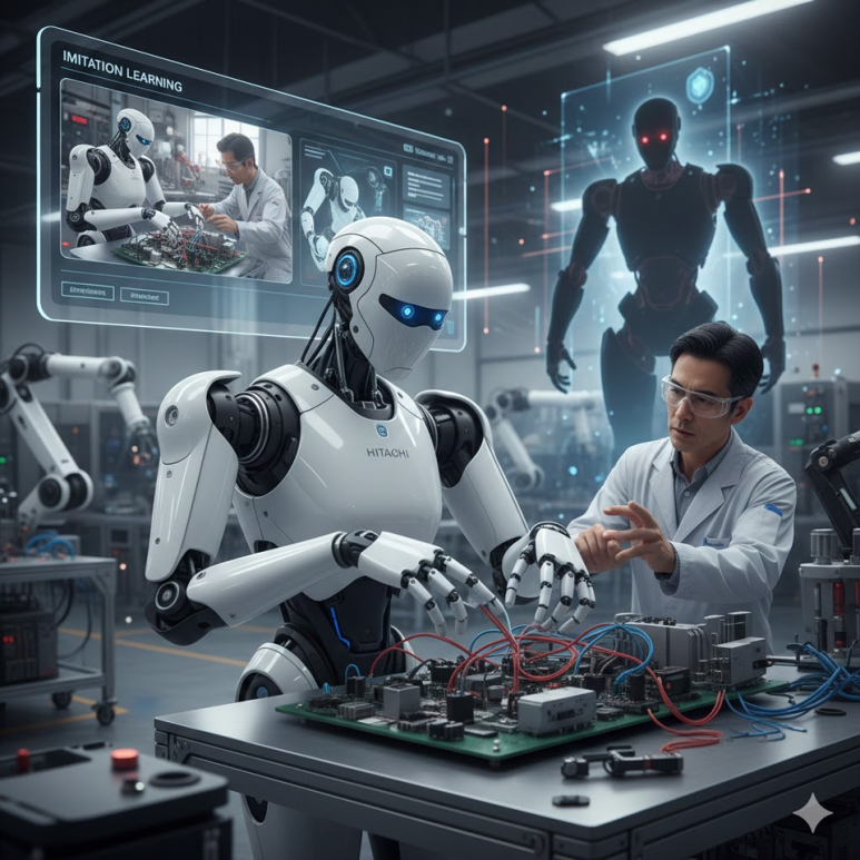 히타치는 로봇이 인 간의 동작을 그대로 습득하는 ‘모방 학습(Imitation Learning)’ 기술을 적용해 AI가 카메라를 통해 인간 작업자의 움직임을 실시간으로 분석하고 학습할 수 있도록 할 계획이다.AI 로봇은 영상 데이터만으로 미세한 손가락 힘 조절과 유연한 움직임을 익힐 수 있다. 이를 통해 공정 변경 시마다 막대한 시간과 비용이 소요되던 로봇 프로그래밍의 한계를 극 복할수 있을 것으로 기대된다.