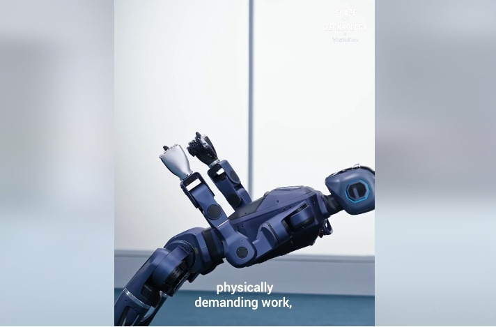 ▲퀄컴의 드래곤윙 IQ10 두뇌칩이 탑재된 휴머노이드 로봇이 안정적으로 선 채 뒤로 등을 굽히는 모습을 선보이고 있다. 퀄컴은 이번주 개막한 세계 최대 소비자가전·IT 전시회 ‘CES 2026’에 참가하고 있다. (사진=스페이스앤테크놀로지 동영상 캡처)