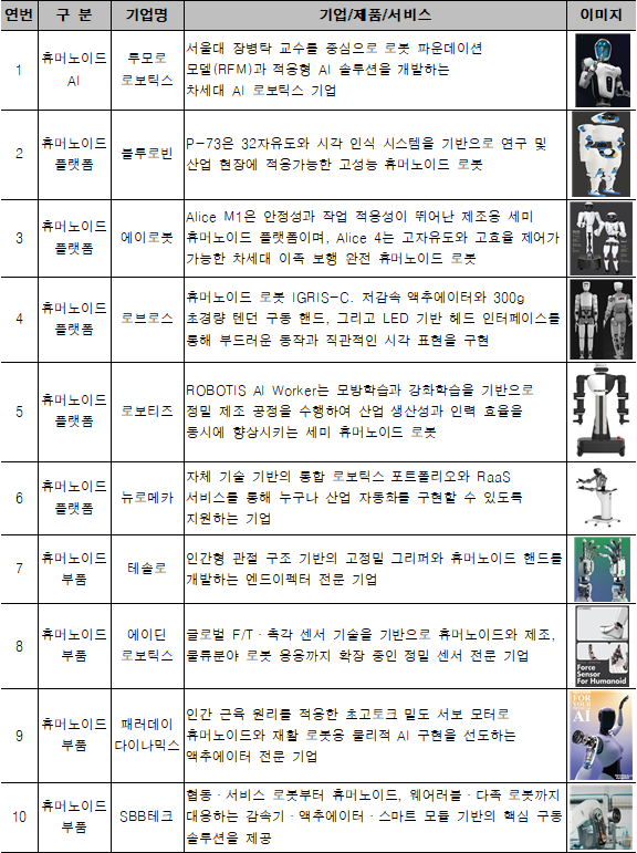 이와 함께 공동관에는 휴머노이드 로봇 전 주기 기술을 아우르는 다양한 전문기업들도 참여한다. 투모로로보틱스는 서울대 장병탁 교수를 중심으로 로봇 파운데이션 모델(RFM) 기반 AI 솔루션을 선보이며, 휴머노이드의 자율 판단과 범용 작업 수행 가능성을 제시할 예정이다.