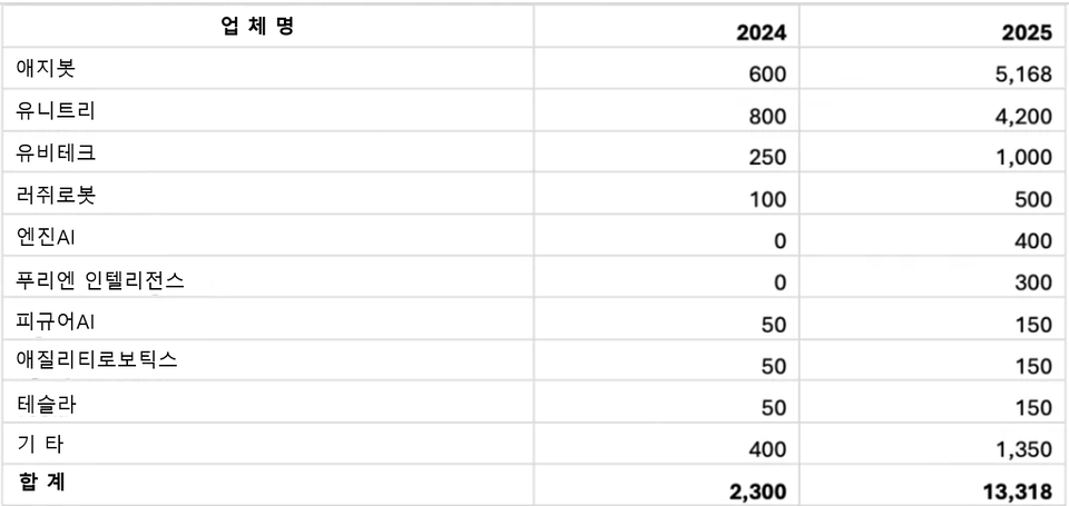2024-2025 글로벌 휴머노이드 로봇 출하량 (자료=Omdia)