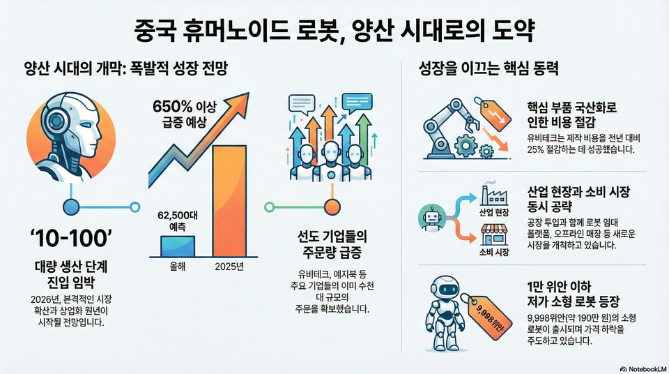 중국 휴머노이드 로봇 산업이 올해 연간 10만대 이상의 대량 생산 체제에 본격 진입할 전망이다.