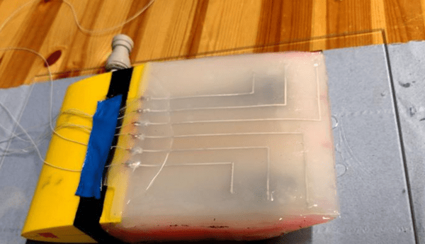 ▲물의 흐름에 반응하는 전자피부.