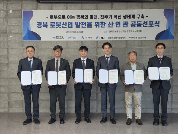 공동 선언문에는 △경북 로봇기업 성장 지원 △휴머노이드·AI 등 미래 전략 로봇산업 생태계 조성 △산·학·연 협력을 통한 글로벌 경쟁력 강화 △로봇분야 국가 첨단전략산업 특화단지 조성과 산업 고도화 등 경북 로봇산업의 지속 가능한 성장 기반 구축을 위한 협력 방향이 담겼다.