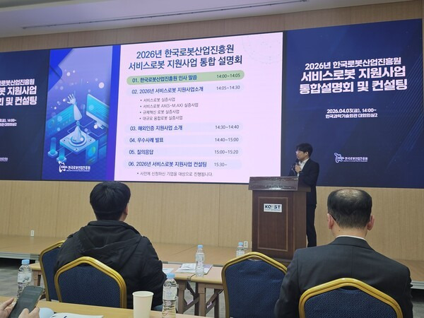 이런 가운데 올해 국내 기업을 대상으로 서비스로봇 지원 사업을 시행하기 위한 설명회가 열렸다. 정부가 해마다 진행하고 있는 ‘서비스로봇 지원사업’의 주무기관인 한국로봇산업진흥원은 올해 진행 절차를 안내하기 위한 ‘서비스로봇 지원사업 통합 설명회’를 3일 오후 서울 강남구 한국과학기술회관 대회의실2에서 개최했다.