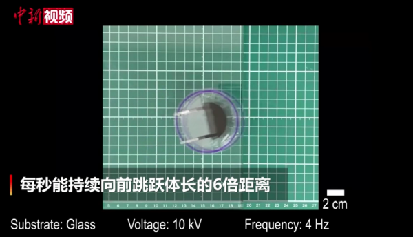 논문 제1 저자인 충칭대학 천루이(陈锐)와 연구진은 무게 1g, 길이 6.5cm의 로봇을 개발했다. 이 로봇은 자신의 길이의 7.68배까지 점프할 수 있으며 초당 몸 길이의 6배 거리까지 전진하면서 연속 점프할 수 있다.