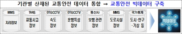 ▲ (교통안전 빅데이터 구축) 기관별로 산재된 교통안전 관련 데이터를 통합하여 빅데이터를 구축한다.