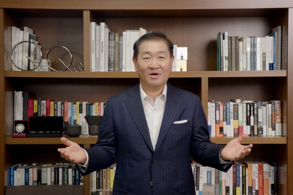 ▲ 삼성 AI 포럼 첫째날 삼성전자 한종희 대표이사 부회장이 영상을 통해 개회사를 하고 있다