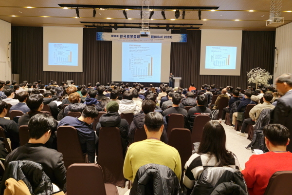 ▲'제18회 한국로봇종합학술대회'(KRoC 2023)가 열리는 강원도 휘닉스평창 포레스트홀 모습
