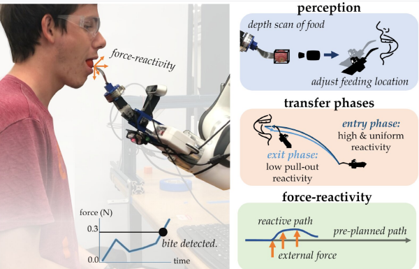 스탠포드대 연구팀은 음식이 사람의 입으로 들어간 직후 동작을 멈추고, 사람이 음식을 무는 순간을 감지하고, 도구를 빼는 통합 로봇 시스템을 개발했다. 이 시스템은 손목 관절과 같은 기능을 갖고 있는 하드웨어를 포함하고 있다. 로봇은 컴퓨터 시각에 의존해 식기에 들어있는 음식을 감지하고, 음식이 입에 접근할 때 사람의 중요한 얼굴 특징을 식별하며, 음식이 입으로 들어갔을 때를 인식한다. 이 시스템은 음식을 받아먹는 사람이 편안하게 사용할 수 있도록 설계된 힘 센서를 활용한다.